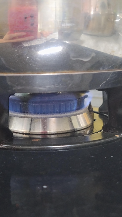 - 센 불로 가열을 시작합니다. 압력표시기의 검은 띠 두 개가 보이면, 약불로 줄여 3~5분간 추가 가열합니다.